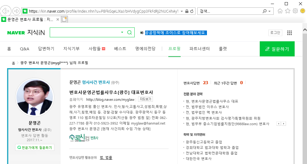또한, 네이버 지식iN 서비스 형사사건 변호사이며,