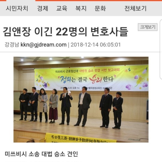 · 김앤장 이긴 22명의 변호사들 중 1인 (광주드림 2018.12.14.보도)